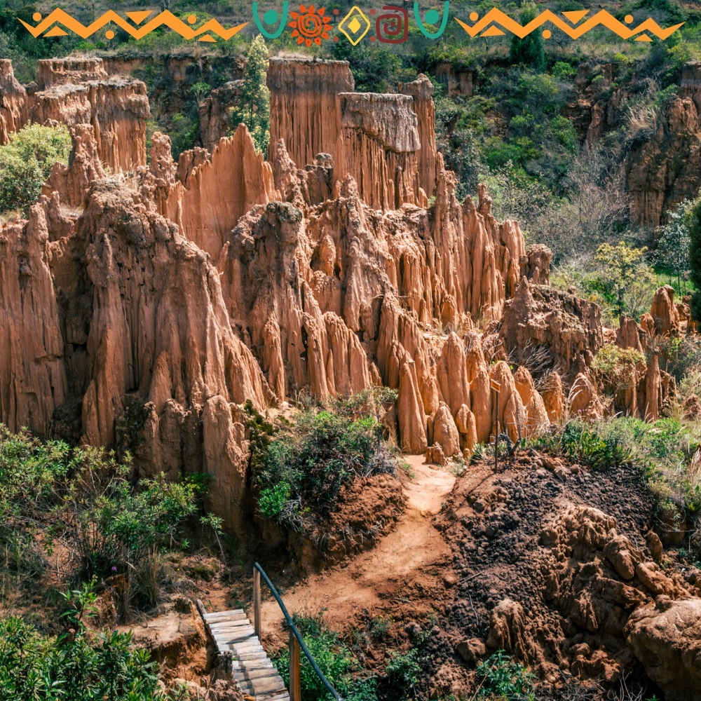 Ubicado cerca de Bogotá, este lugar ha sido moldeado por la erosión, creando formaciones únicas como cañones, cárcavas, estoraques y laberintos que te harán sentir en otro planeta. Además, aquí se han encontrado fósiles de mamuts, vestigios arqueológicos y pinturas rupestres que cuentan la historia ancestral de la región. 🦴🔍